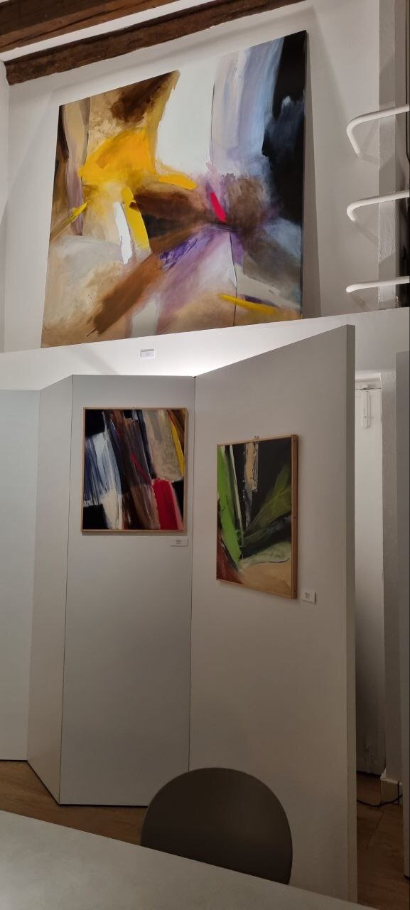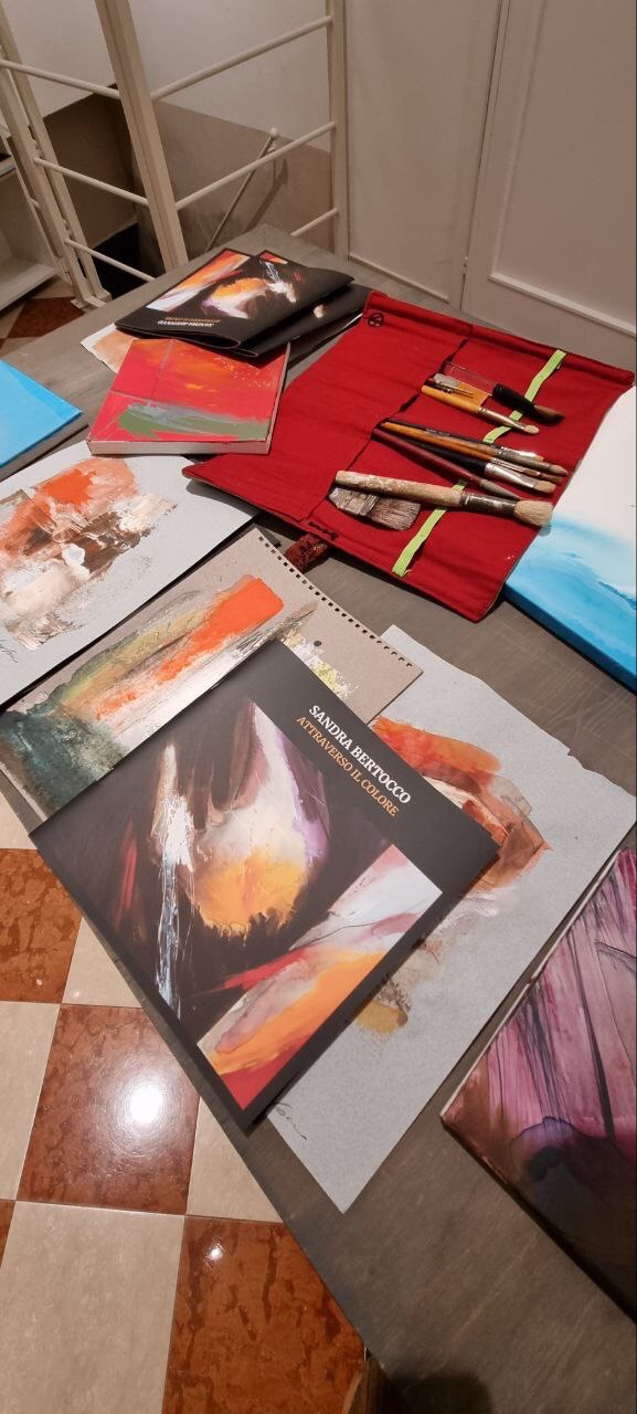 E poi arrivò la Pandemia... Ci siamo lasciati con Sandra Bertocco a Bologna c/o lo Spazio del Dumbo in occasione del BooMING (importantissima collaterale di Artefiera 2020) per ritrovarci in un luogo intimo e di forte comunicazione, da Daniela Paluello a Padova. Attraversato luoghi, incertezze, emozioni ma in compagnia di Colori! Per Sandra la sua vita, per me l’ennesima scoperta. Il Colore come luogo da attraversare, un fiume un mare un deserto una montagna. Guadare navigare, restare accecati da un sole cocente, scalare arrampicarsi. Perdere le speranze? Smarrirsi perdutamente? Alzare sempre gli occhi al cielo....BLU. Rubens sosteneva che il BIANCO era veleno per i quadri e che andava usato solo per i dettagli luminosi.i Sandra ci inebria con i suoi Bianchi, nastri trasportatori di felicità interiore, nuvole che frammentano alla prima carezza del sole, tuorlo profumato, saliva incandescente. Flebili voci appena accompagnate da due accordi di chitarra. Le sue Sirene però preferiscono il GIALLO, e lei si tuffa con loro alla ricerca di un Eroe che perde l’ennesima battaglia. C’è ancora un attimo per riposare tra un VERDE che ti ricorda quel gioco da bambino in cui il riso e il pianto si scambiavano tenerezze audaci e la fretta, maledetta fretta, di diventare adulti. E stare lì per ore a raccogliere zolle e sporcarsi di terra infuocata dove il MARRONE è solo un punto di incontro. Tutta l’arte di Sandra è l’equilibrio tra tecnica stile armonia nel sublime tentativo del superamento del colore. Non nell’estremo gioco monocromatico ma nella combinazione dei contrasti e delle simmetrie sghembe, oblique o parallele. La Forma...è pura immaginazione. Pablo Picasso diceva che quando non aveva più il BLU usava il ROSSO. SANDRA gli risponde con la sua Pittura come David Forster Wallace faceva con la letteratura: “Ci sono intensità di BLU oltre ogni blu più limpido che si possa immaginare”.